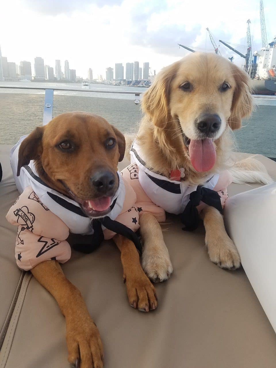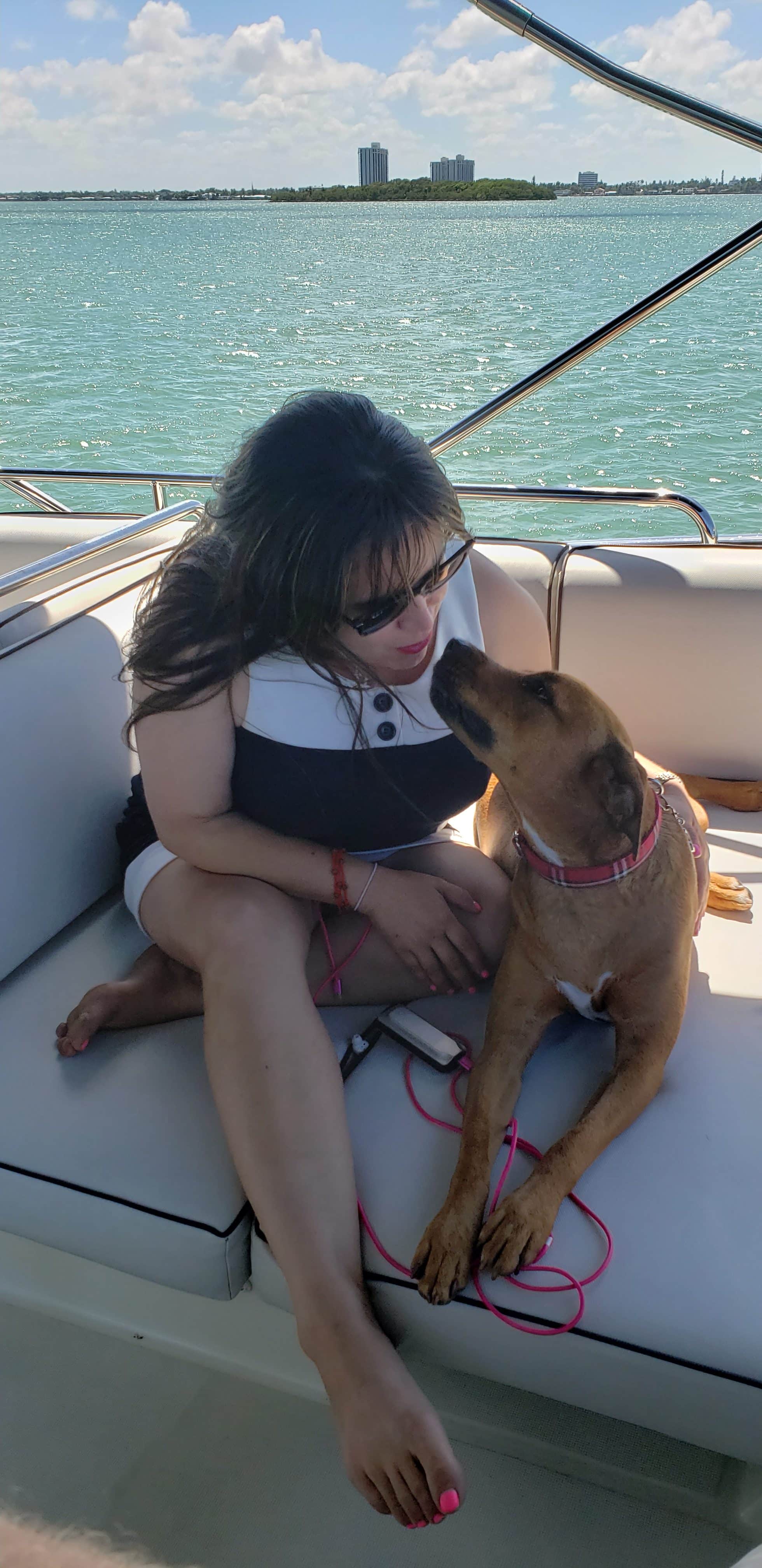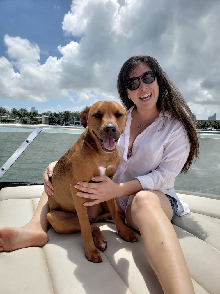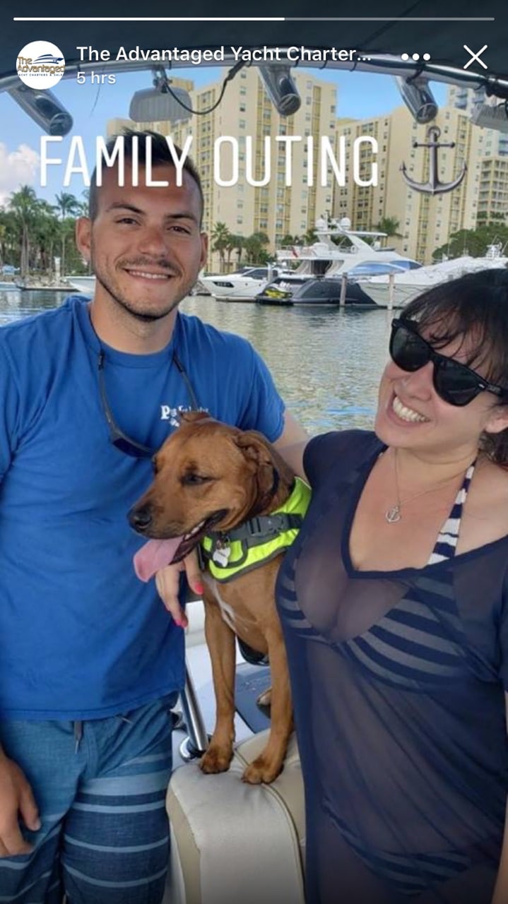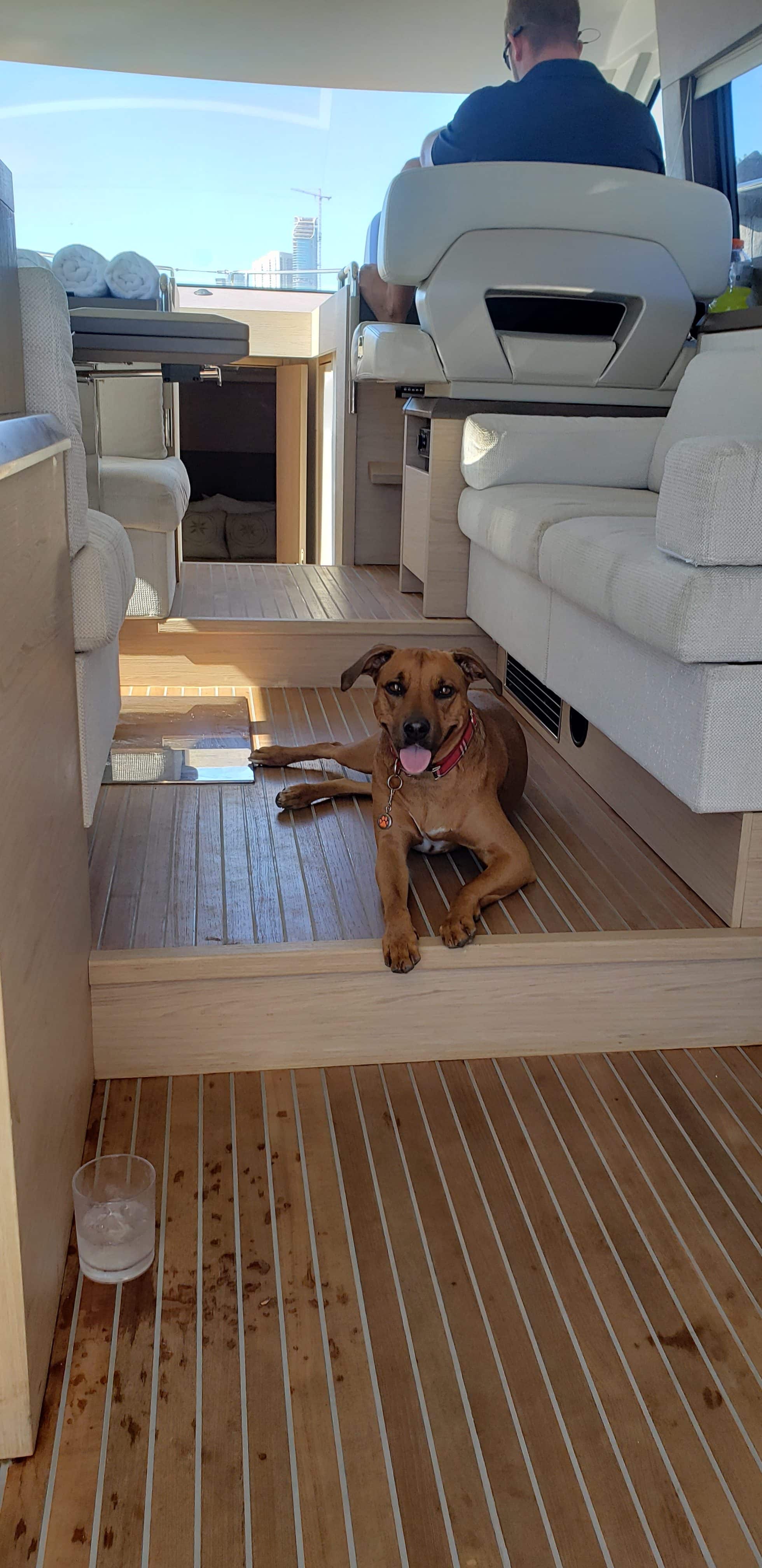 Squirrel was rescued from Miami Animal Control at the tender age of 6 weeks old , she was going to be put down as she was “sick as a dog” She has been happy and healthy since the day she came home. Squirrel comes to work every day and loves meeting people, she loves to give kisses and jump on boats. She has met city officials, clients, and even celebrities. She is definitely a boat dog! Come meet her as she greets every guest!