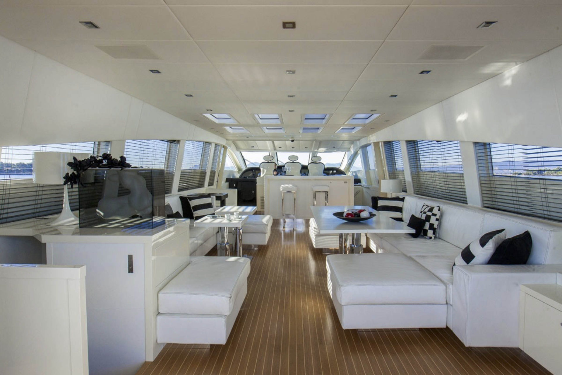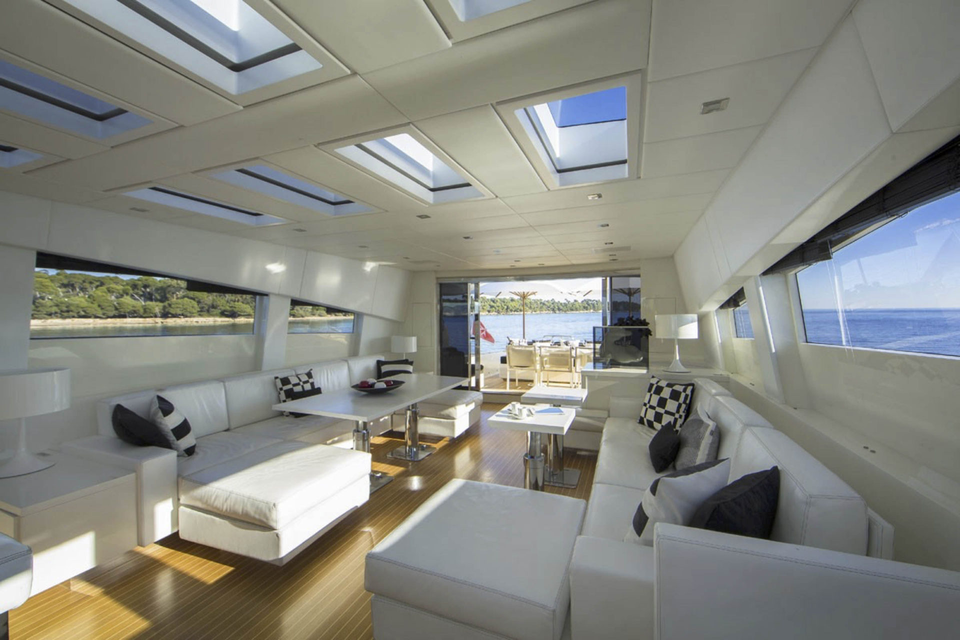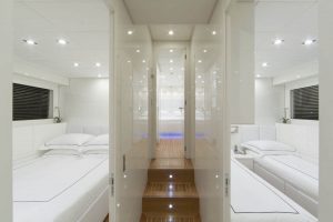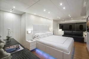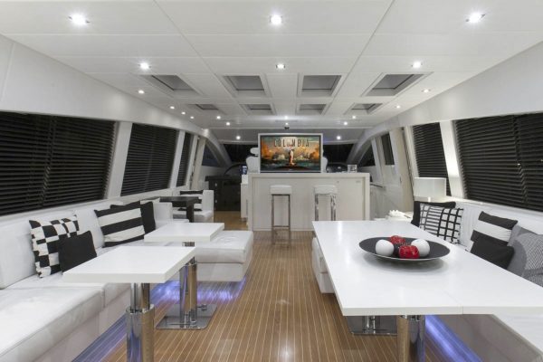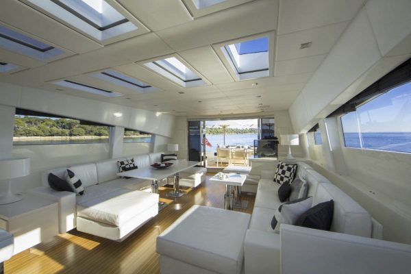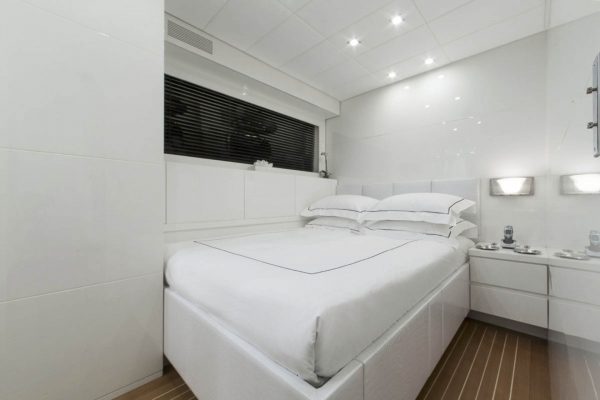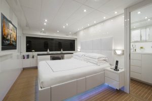 FRIDAY boasts a beautiful interior with light teak floors and all white leather interior offering the perfect combination of serenity and modern design, which is incredibly pleasing to the senses.