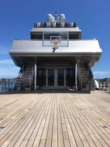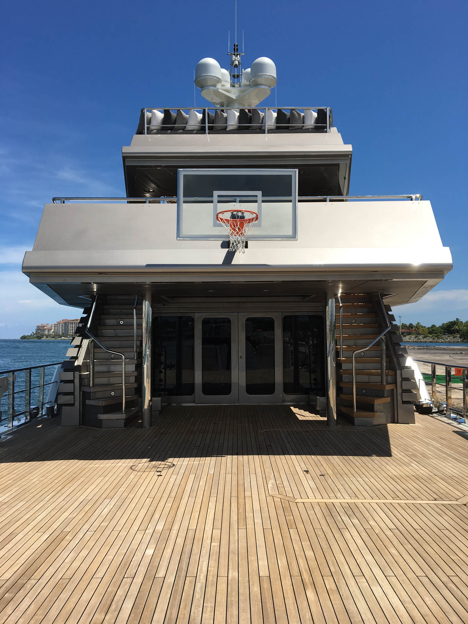 Jacuzzi (on deck), Barbeque, Separate Crew Passageway, Swimming Platform, Basketball Net