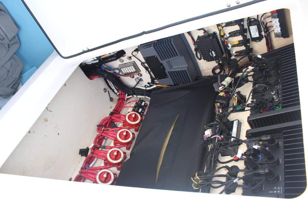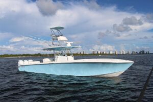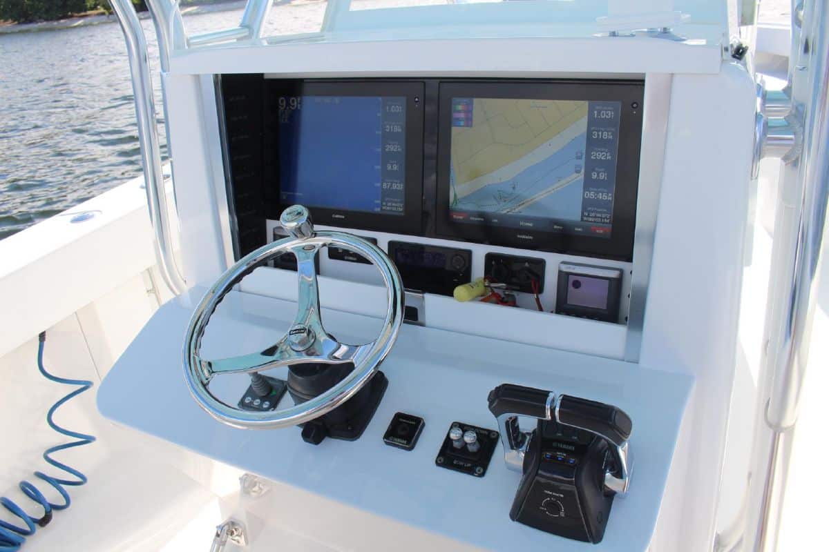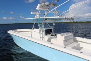 Loaded with garmin electronics, factory hardtop with birdsall marine tower, 3 custom painted yamaha 350’s , freshwater head in console , forward seating , great sound system with jl audio speakers!