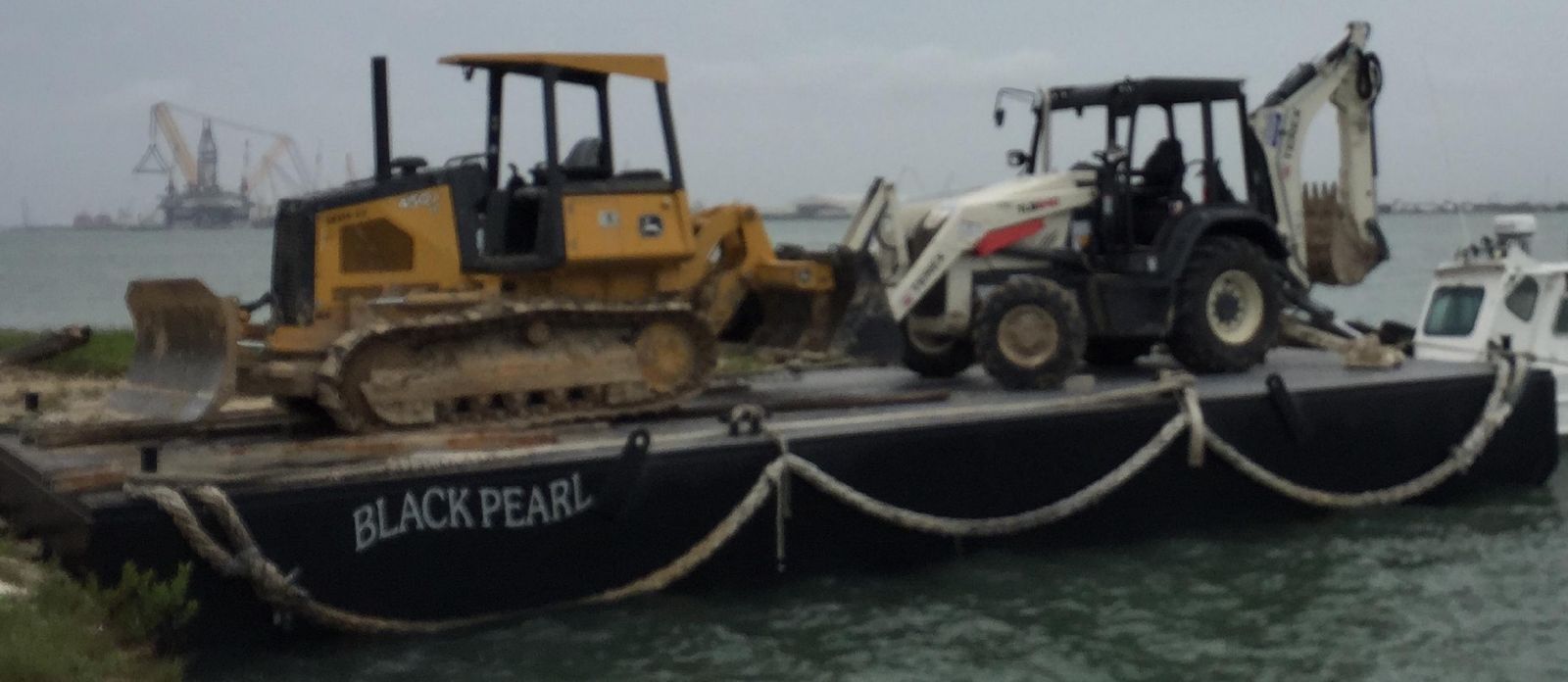 Black Pearl” is a one-of-a-kind custom barge.  She is super sturdy as she is constructed using all 3/4″ steel.   With dimensions that allow her to operate in shallow conditions and tight spaces, her 100-ton capacity allows her vast capabilities and versatility.