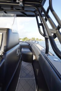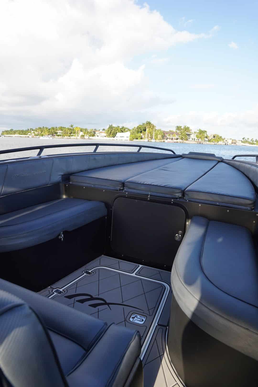 Options aplenty on the 40S Open, the built-in forward U-Lounge with electric table provides a great space to picnic or lay out in the sun. Perfect for a half day in the sun for up to 7 guests.
