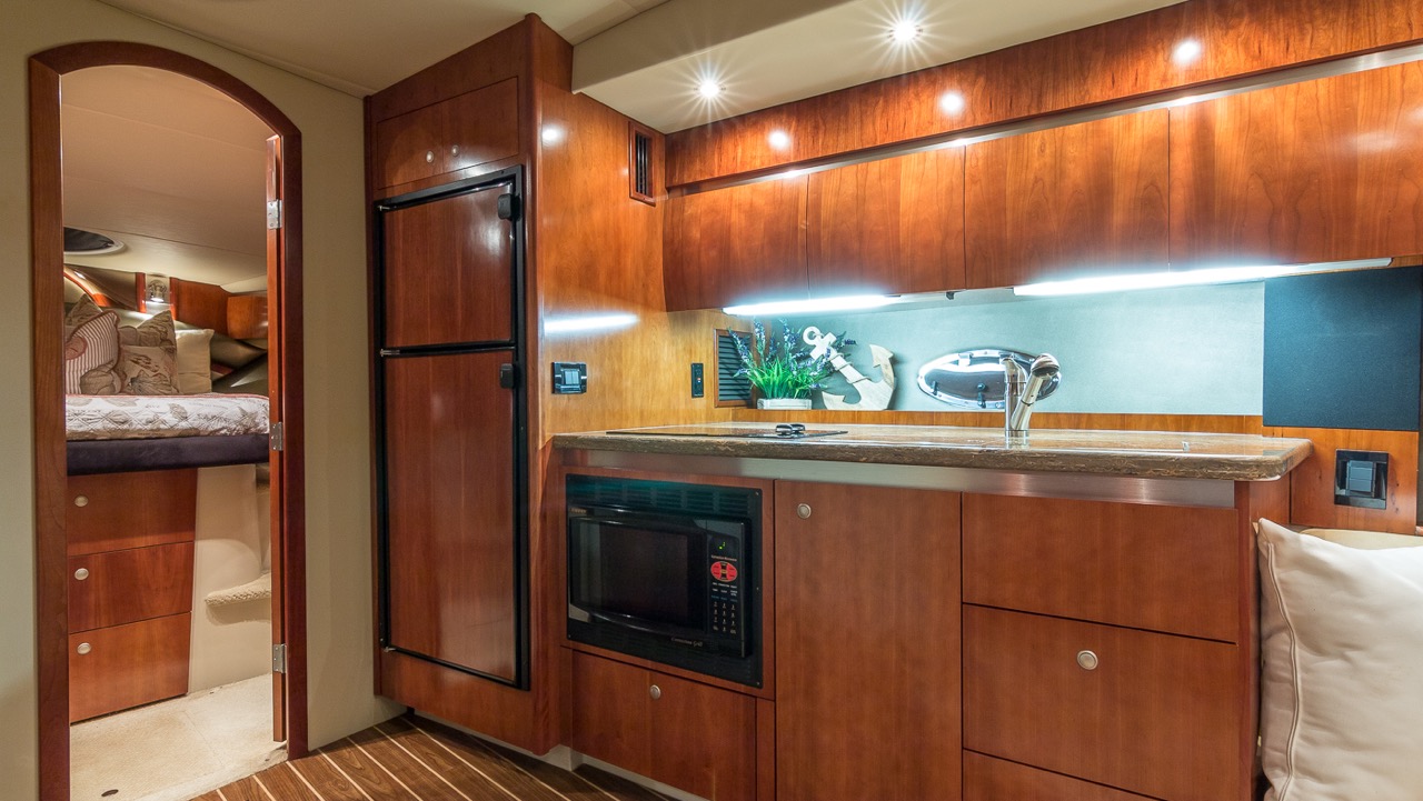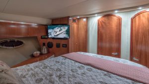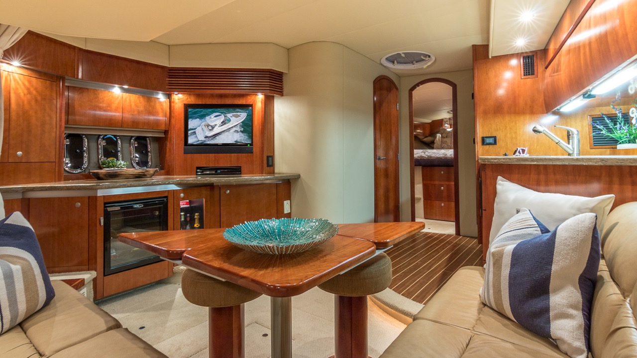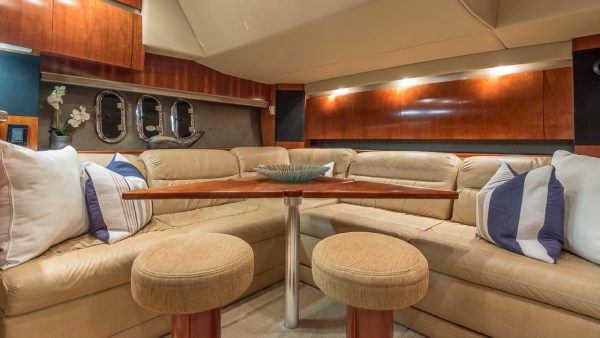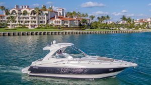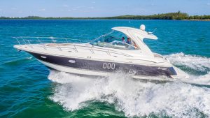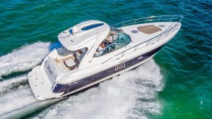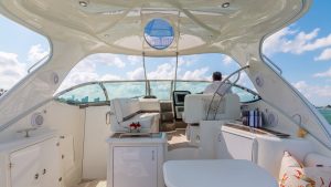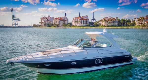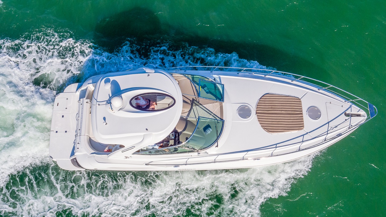 Our Cruiser is a late model Express with high ceilings, abundant salon space, one full bedroom and one complete bathroom. She has a hard top allowing everyone to gather in the shade for protection from the beautiful Miami heat. You can walk to the front of the boat where you will find cushions to lay on and sunbathe yourself while being pampered by our staff.