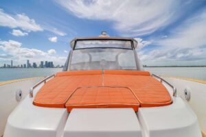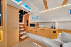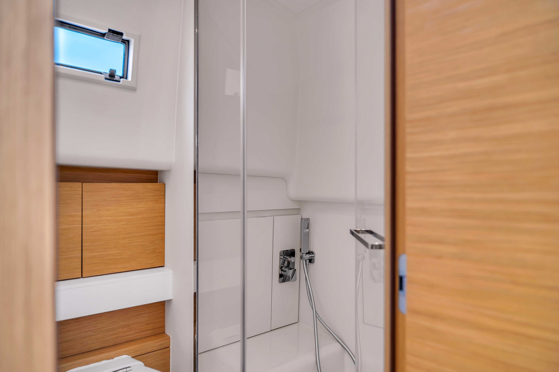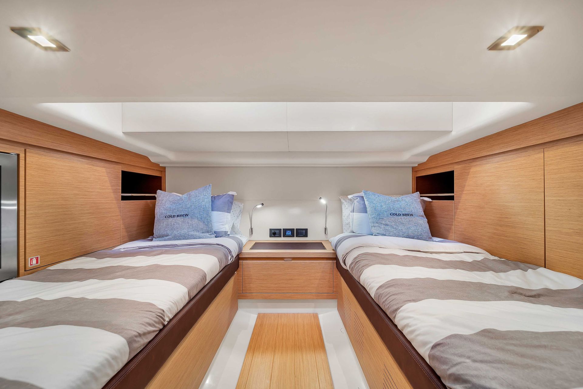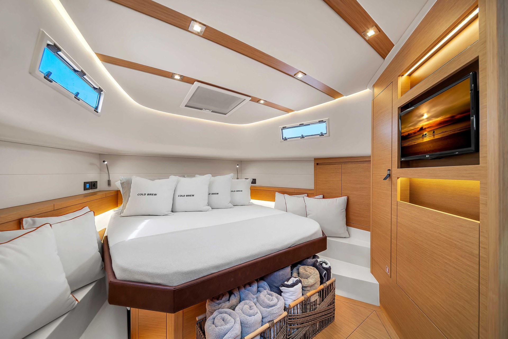 The Pardo 43’s timeless elegance and unique personality are the result of both our boatbuilders’ expert hands and a unique design that showcases craftsmanship, even in the most modern shapes. Thanks to its linear and refined furnishings, the Pardo 43 interiors reflect the excellence synonymous with Made in Italy, characterized by a careful choice of wood veneers and meticulous workmanship. Excellent inside and out.