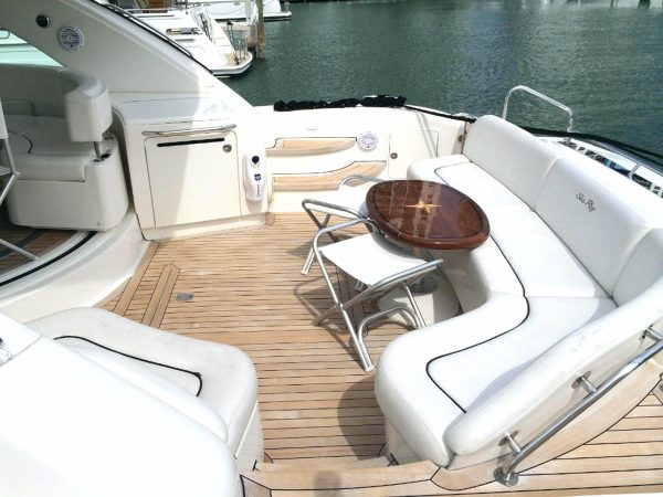 This Sea Ray was designed for a person who has made a mark on the world and wants to share his or her good fortune with friends, neighbors, business associates and clients. This vessel is designed for a person who is social and who revels in the good times that a special sea-borne venue engenders. The 540 is a motoryacht that has the entertaining room of a megayacht on two decks without the need for a seven-person crew and a big-six accounting firm to keep track of the bills.
