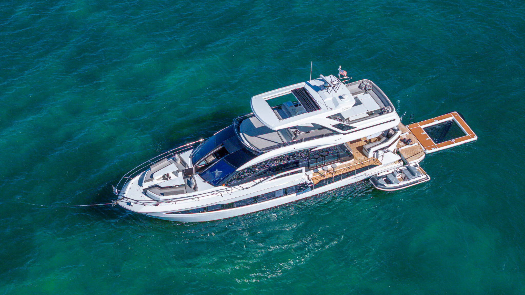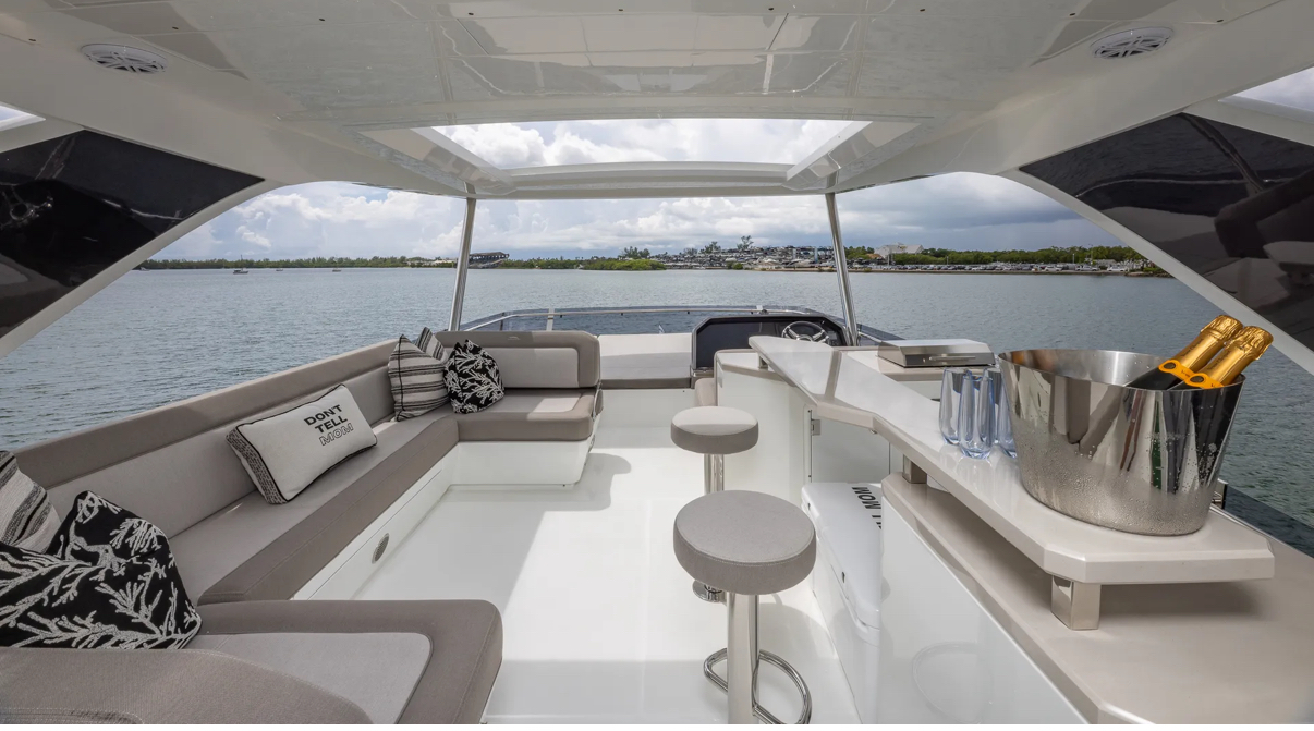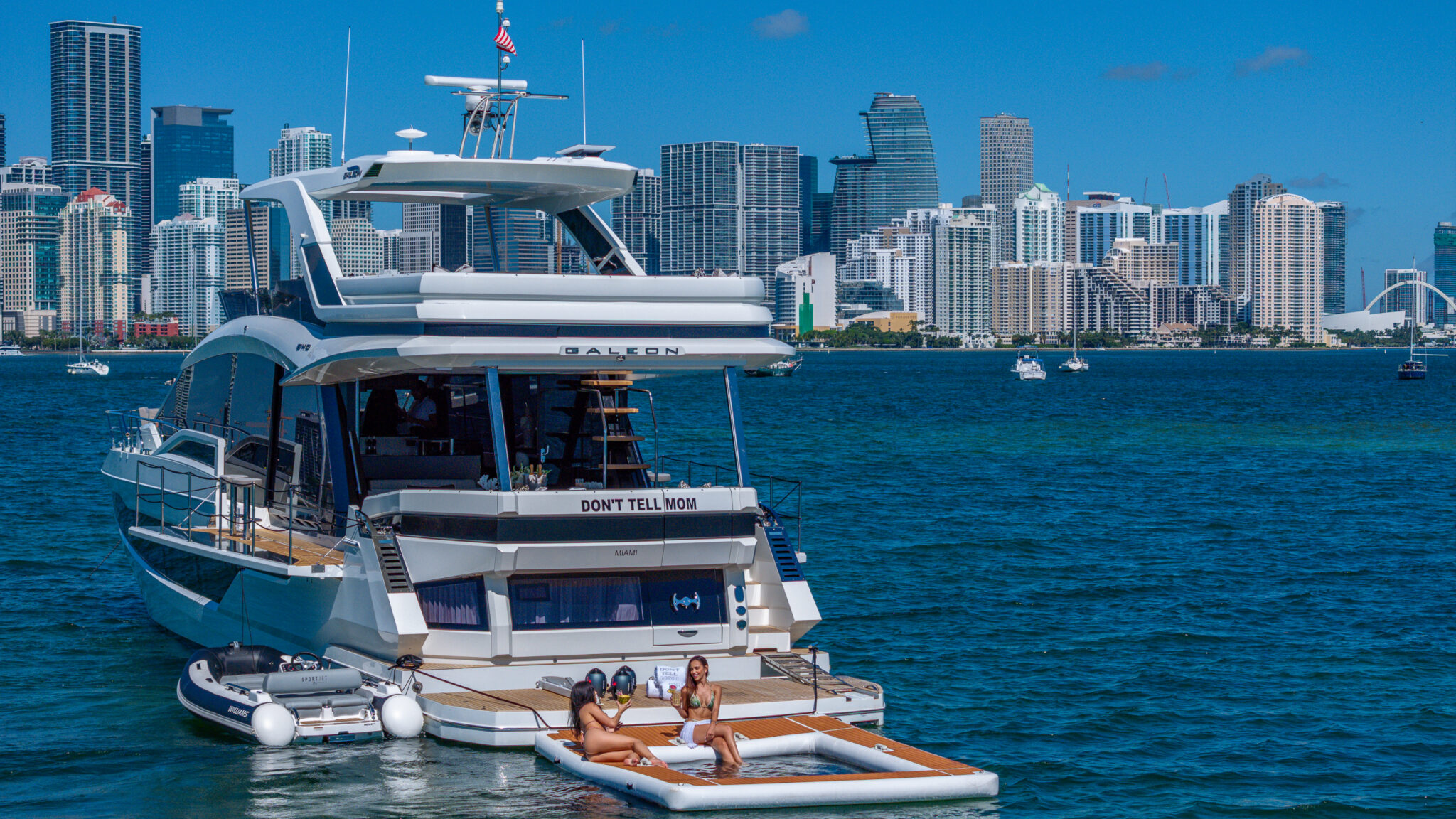 Get onboard this absolute Luxury of a vessel. By combining the lightweight but incredibly strong attributes of carbon fiber with powerful engines, the Galeon 680 FLY serves up stunning performance perfectly suited to your escape. Available for day charter or a trip to The Bahamas. When you step on board, you’ll be taken aback by the overabundance of space, amenities, and a class-leading level of detail. One look makes it