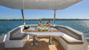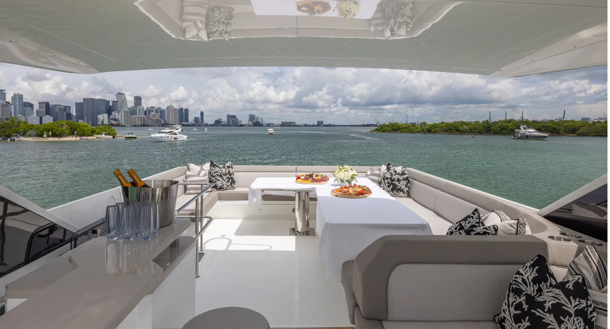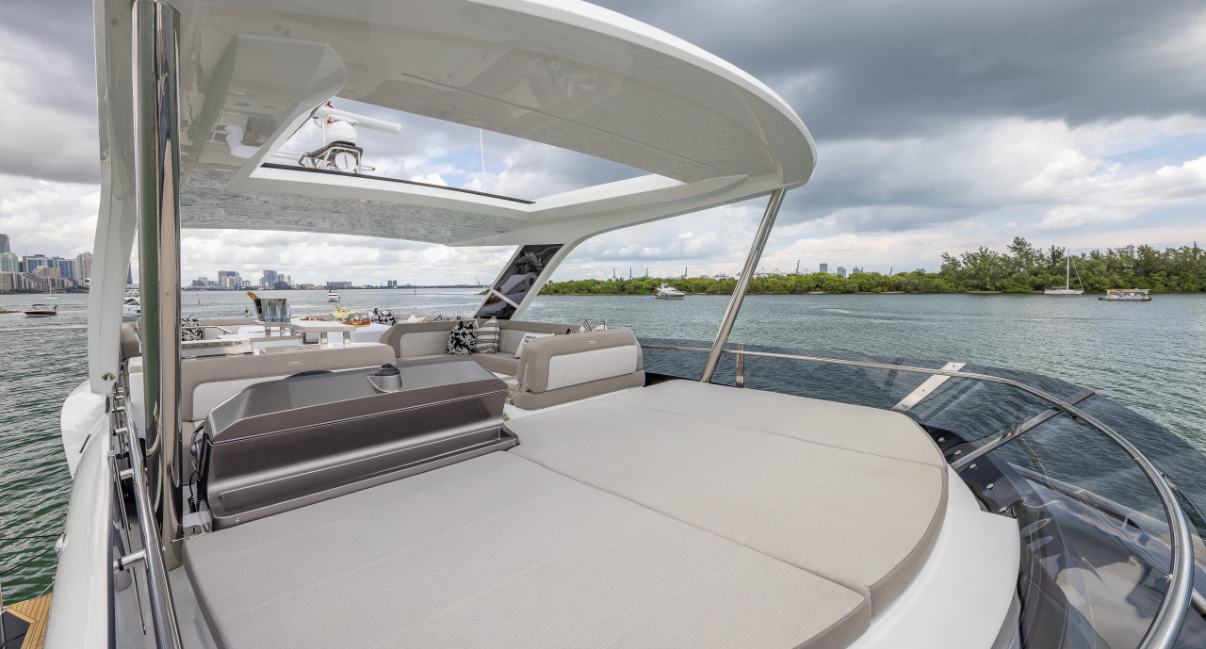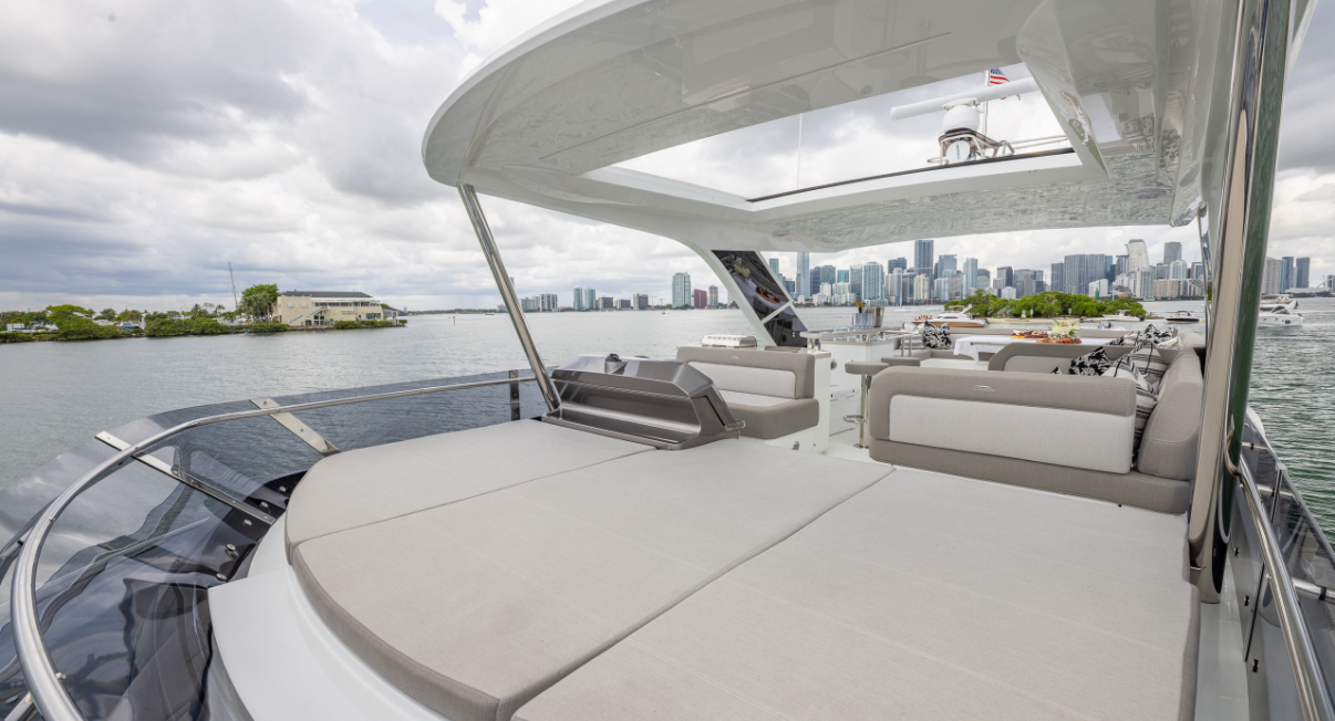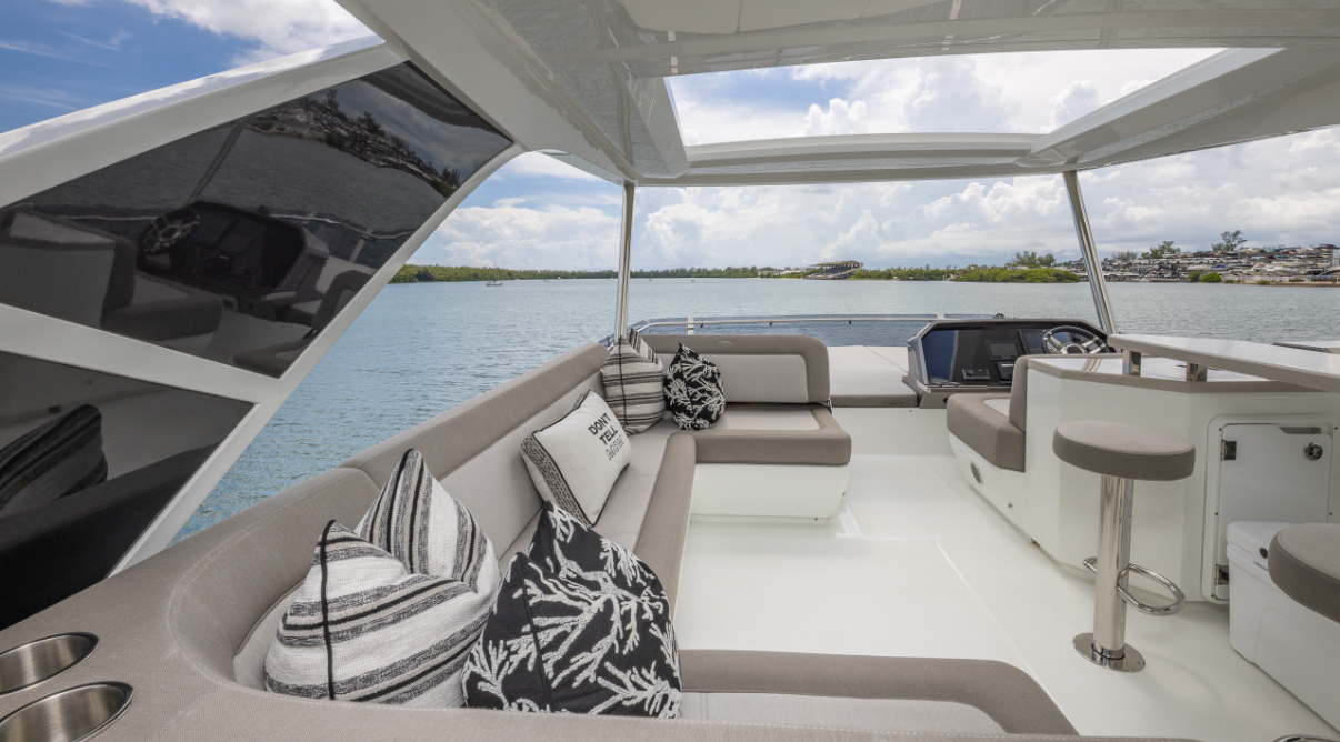 Get onboard this absolute Luxury of a vessel. By combining the lightweight but incredibly strong attributes of carbon fiber with powerful engines, the Galeon 680 FLY serves up stunning performance perfectly suited to your escape. Available for day charter or a trip to The Bahamas. When you step on board, you’ll be taken aback by the overabundance of space, amenities, and a class-leading level of detail. One look makes it