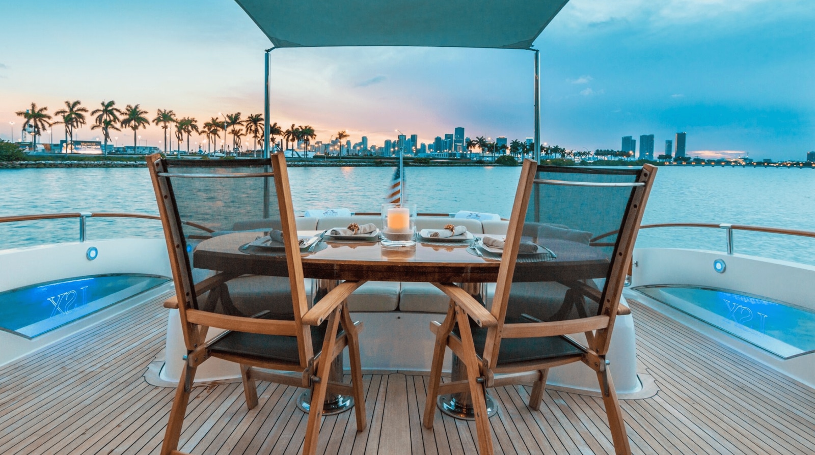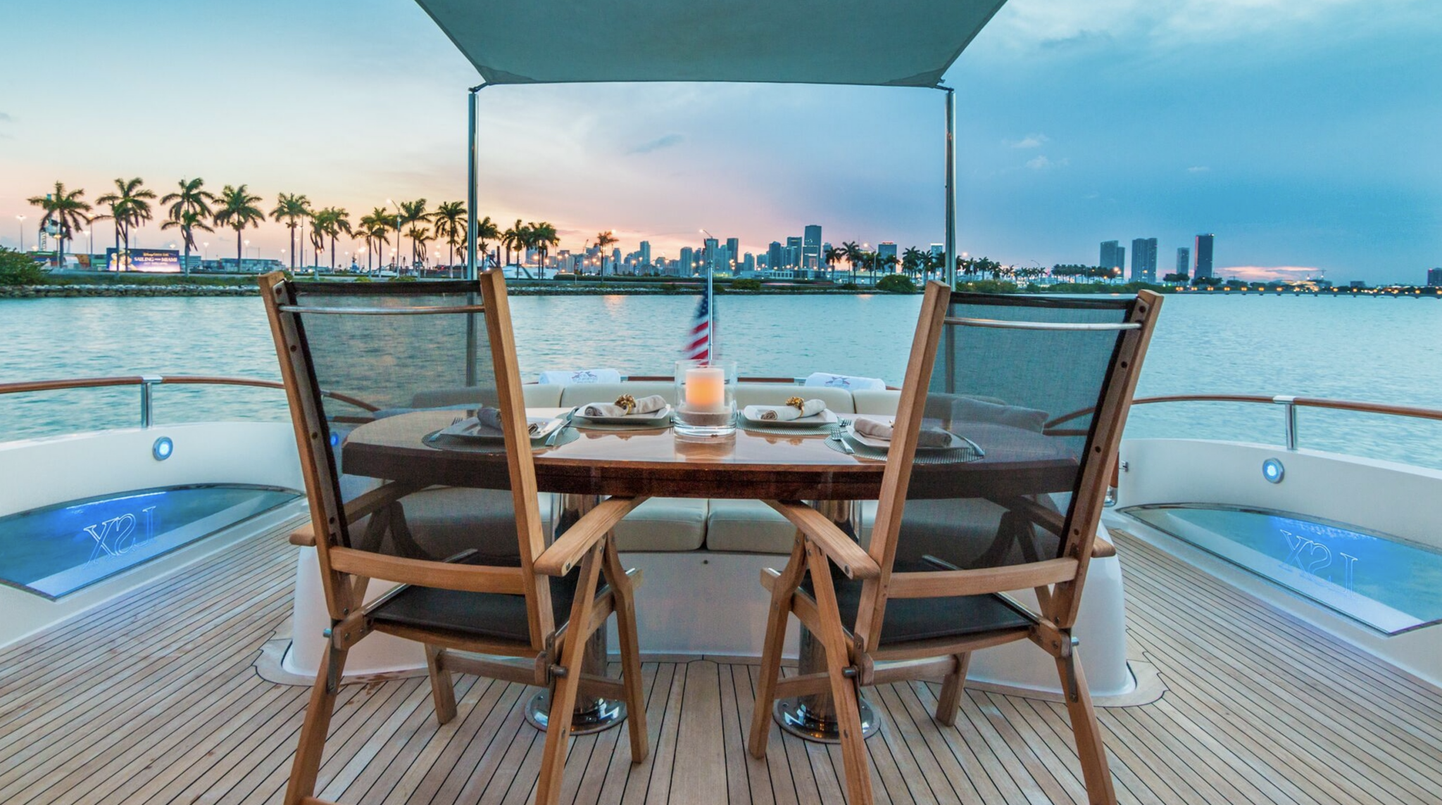 Bring your own F&B or we can setup catering for you. For dockside restaurant reservation please call ahead. Call or text us for additional questions at 305-358-0745