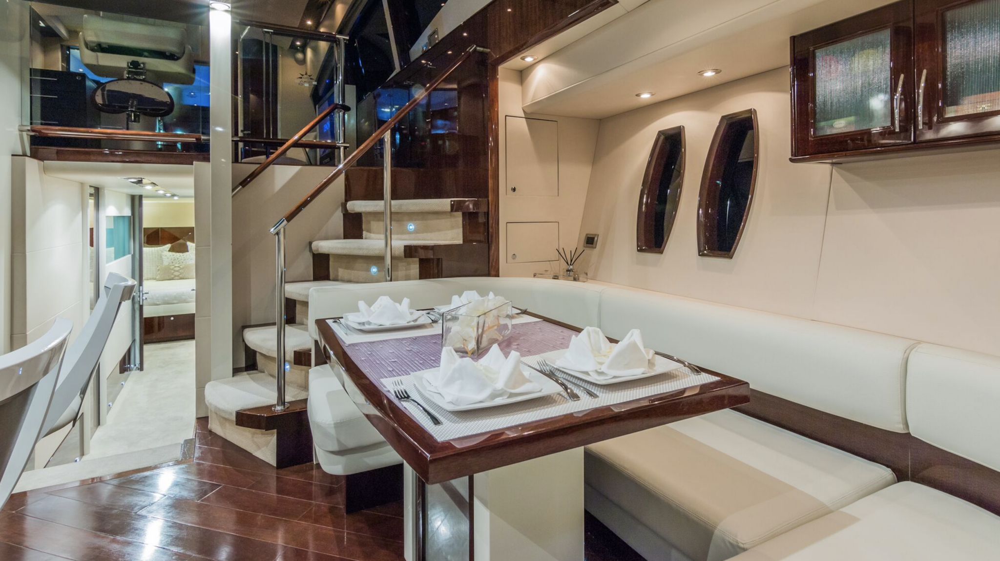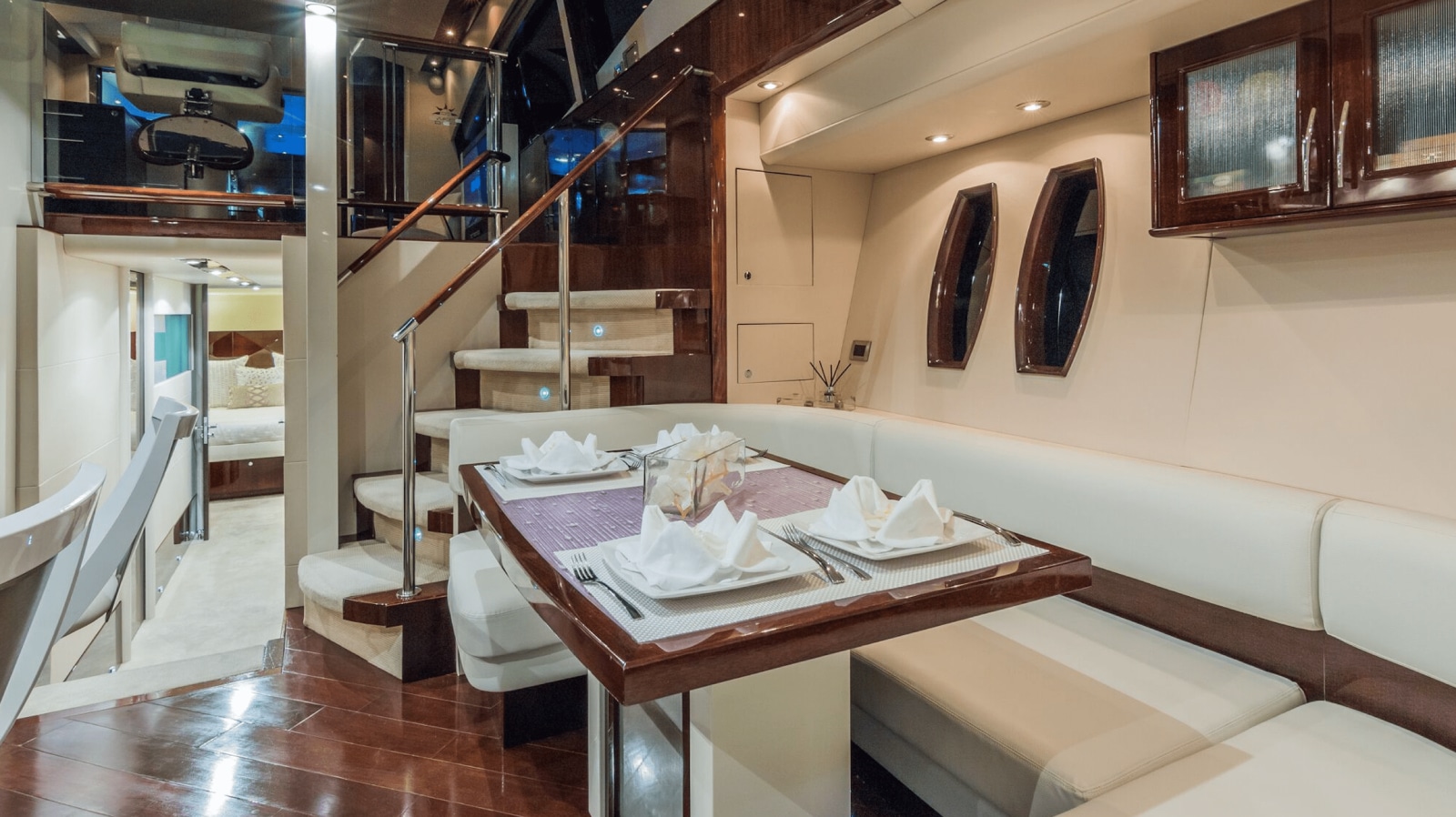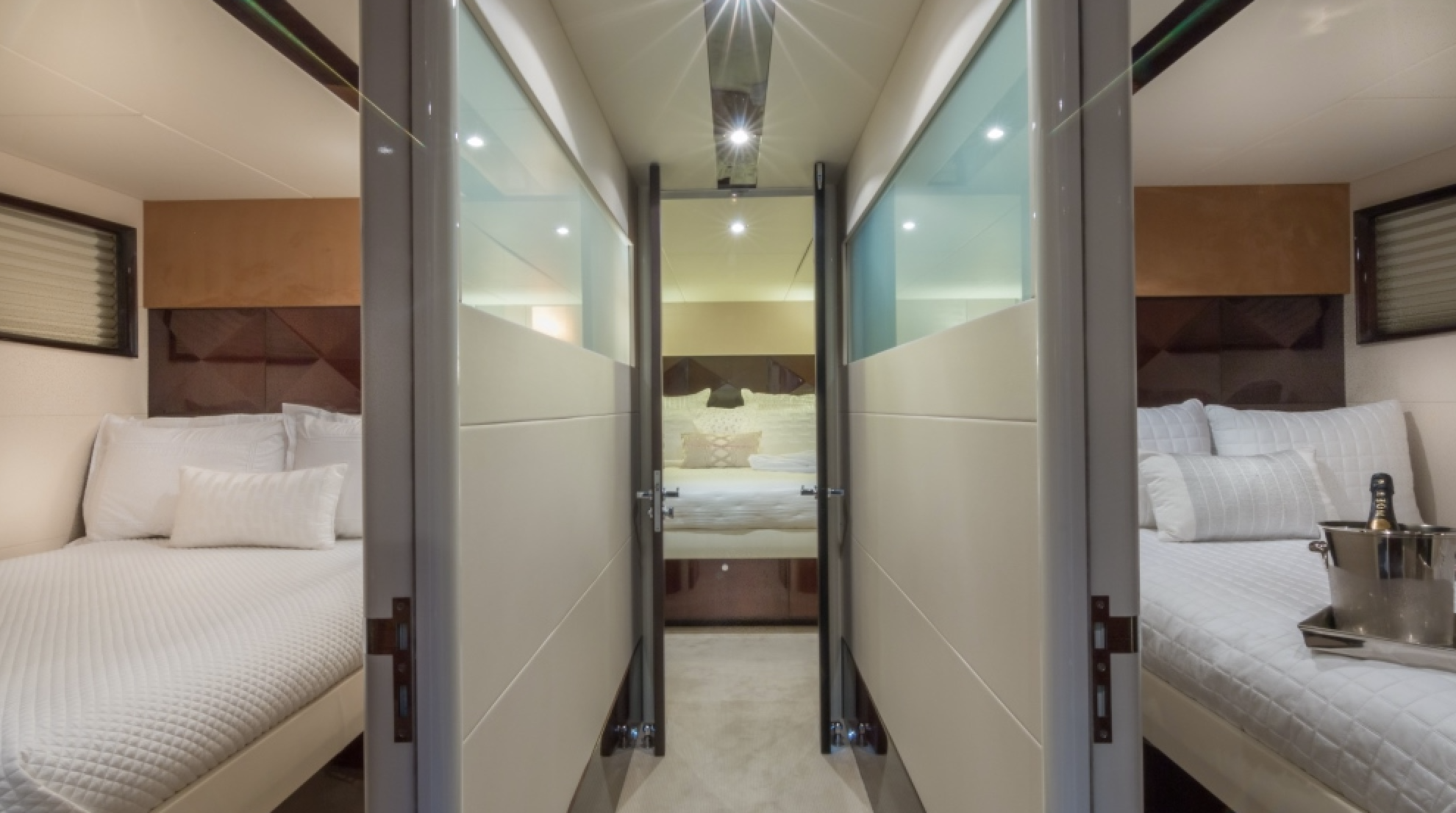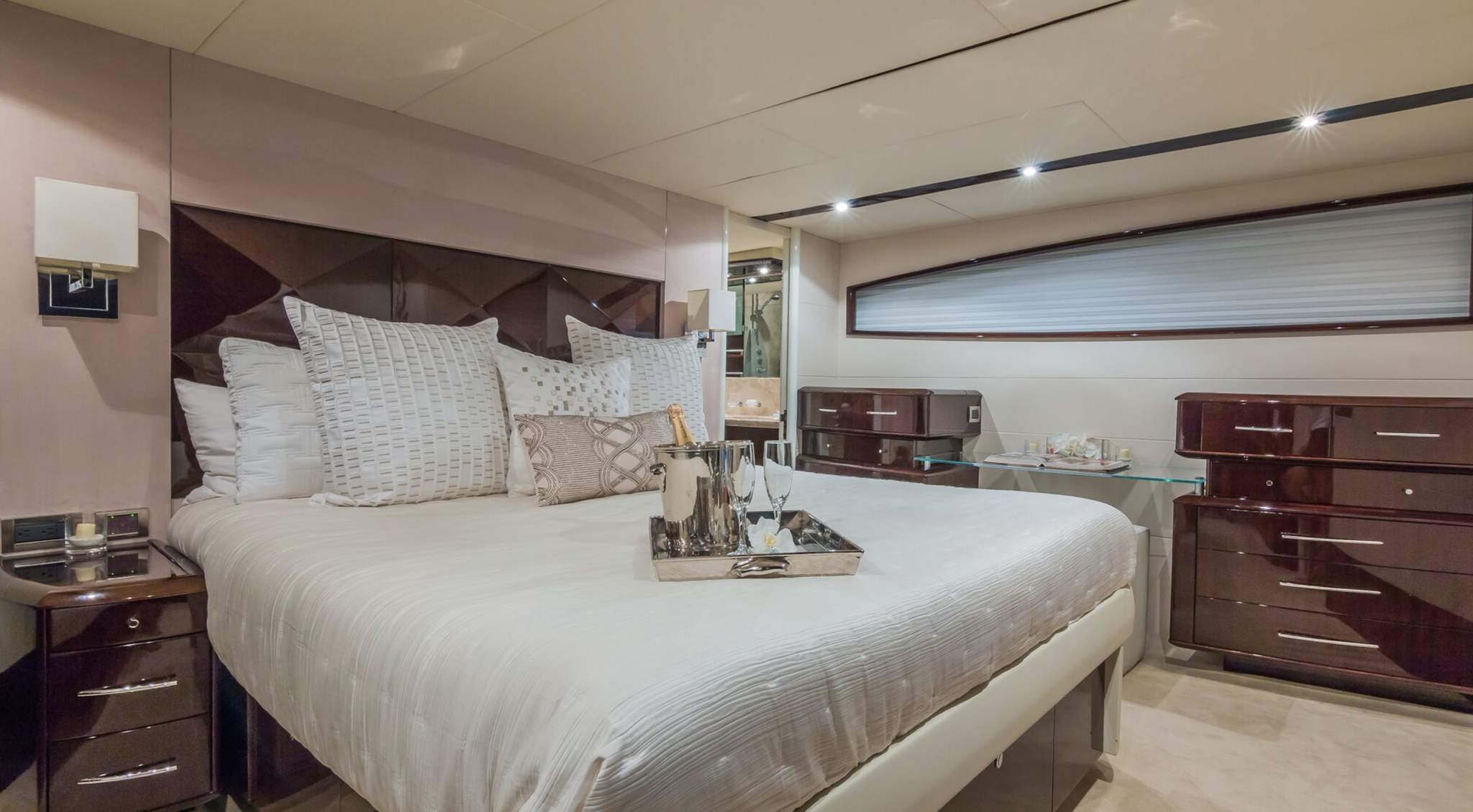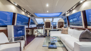 From the moment you first glance at the revolutionary design there is an undeniable presence about this Lazzara model. It exudes modernism, sleek, elegant, and confident. It is the ultimate yachting experience you want to be part of. She is equipped with 4 cabins (sleeps 8). 1 king bed and 3 queen and 4 bathrooms. Moreover, it has a platform for easy access jumping in the ocean and relax on it while soaking up the sun. Enjoy the waverunner, pull tubes and beach games while taking a break. Captain, mate, Local idle cruising fuel, soft drinks, water and ice included.