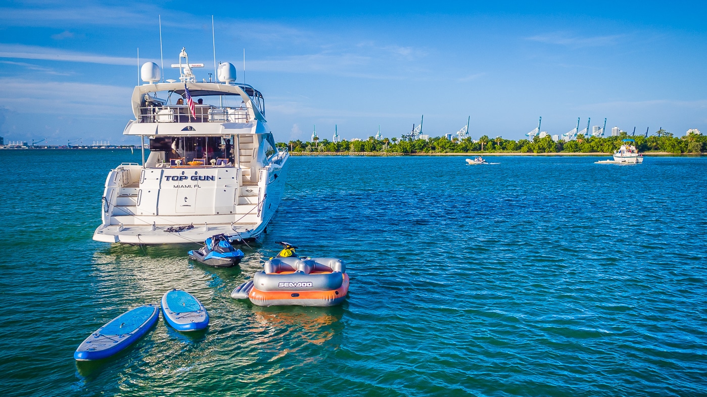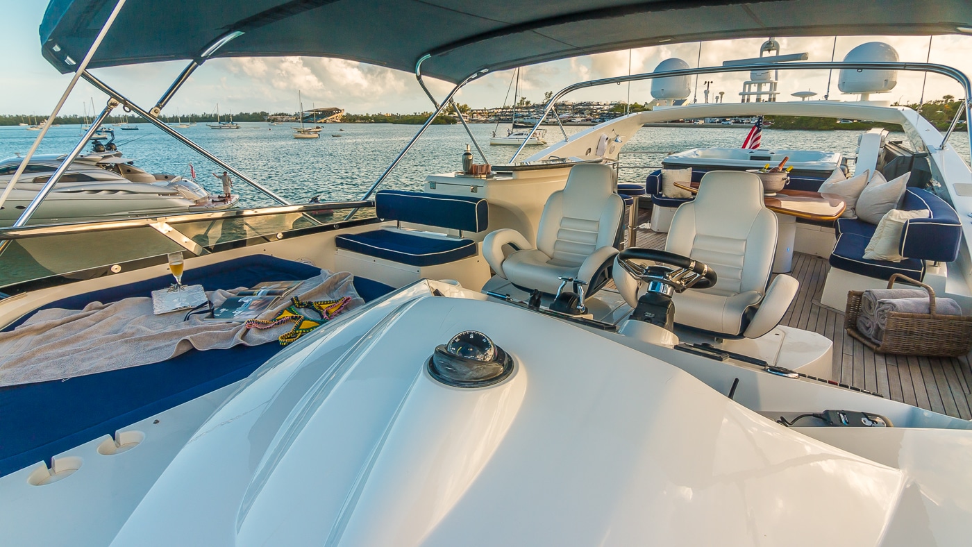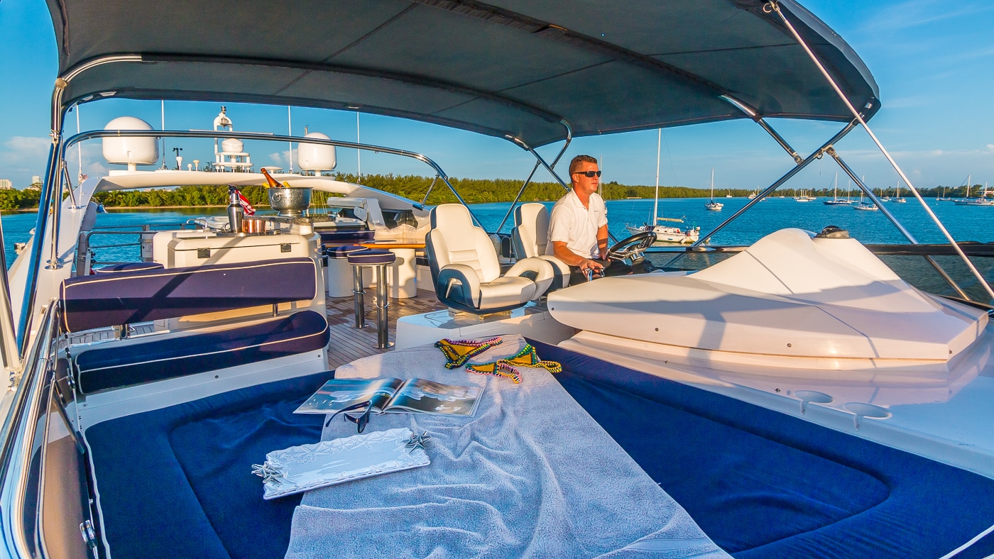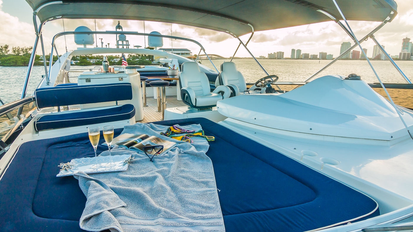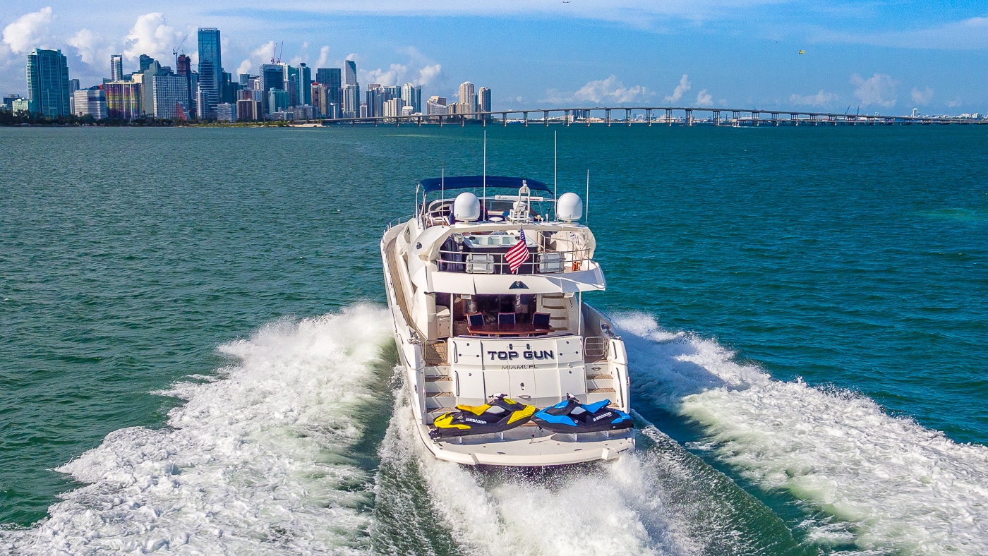 She is a beautiful combination of style and exclusivity, the 82 Sunseeker Yacht delivers all you need for a majestic day trip or multi day trip with your friends and family sleeping 8. From bow to stern, every detail has been crafted to perfection. Inside, the main saloon is a large welcoming space; full of natural light, hand-finished furnishings, and state-of-the-art technology. The outstanding level of design and craftsmanship continues below deck, where both the owner’s stateroom and guest cabins offer privacy and extravagance in equal measure. She is a perfect charter yacht for Miami which also
