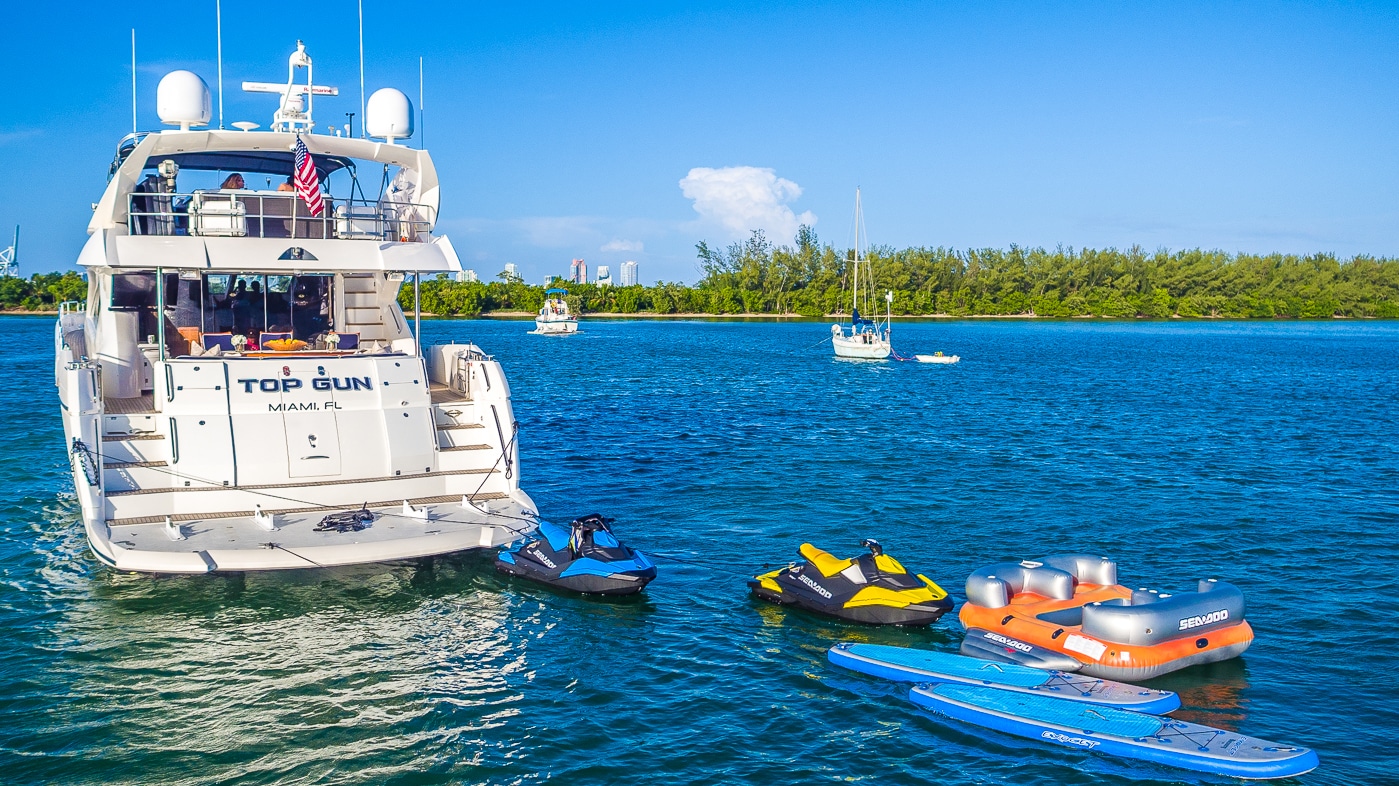 includes 2 Jetskis and a Jacuzzi on the flybridge.