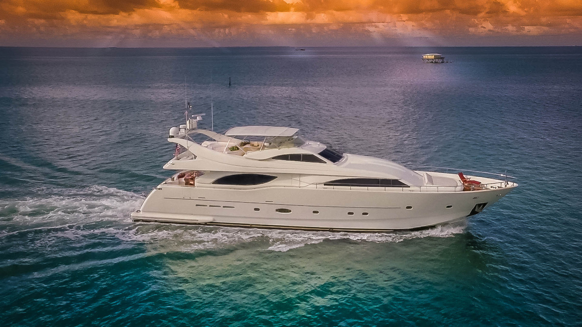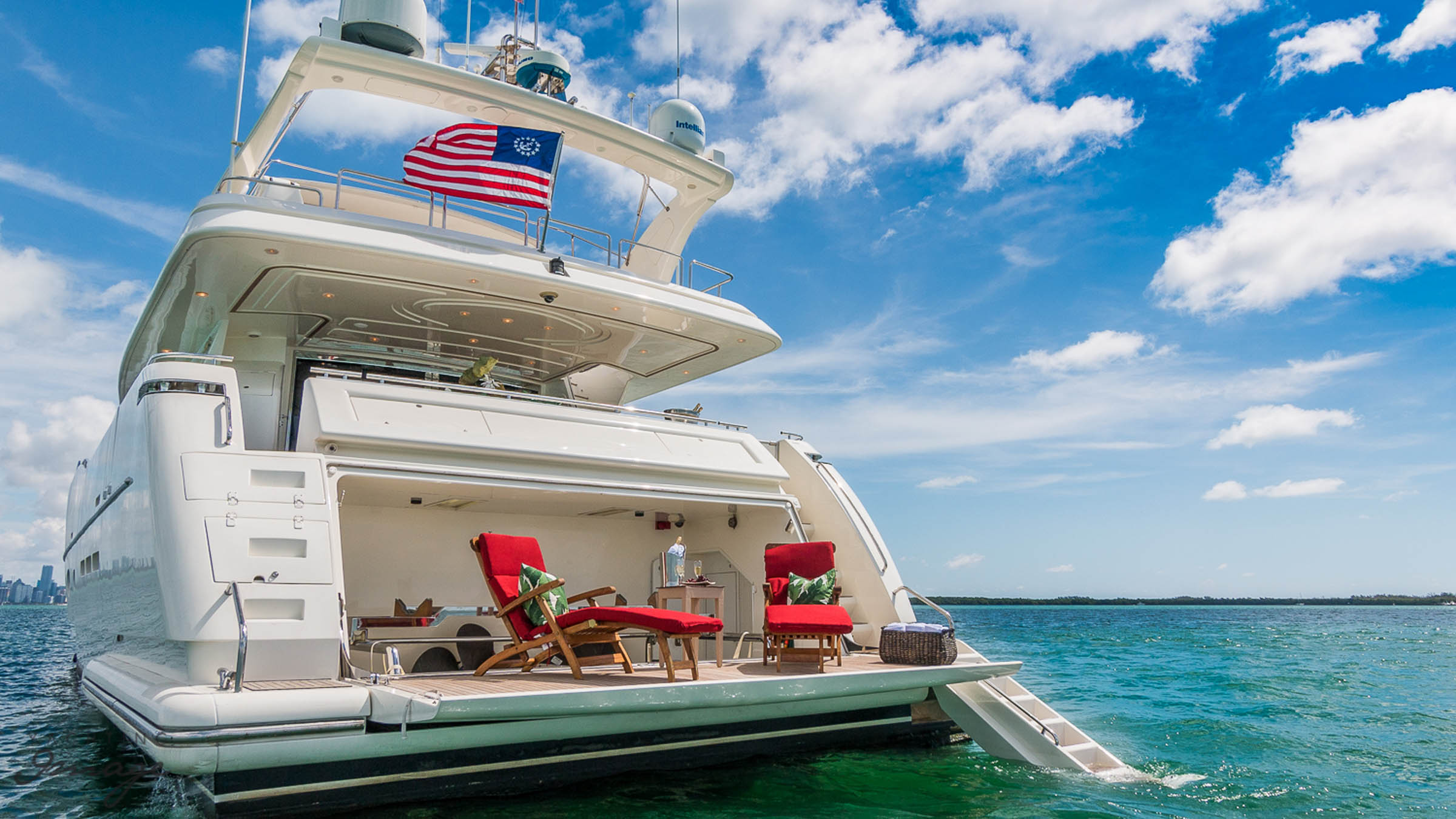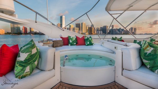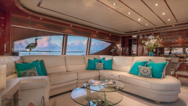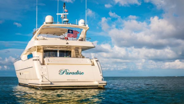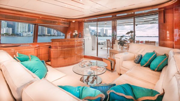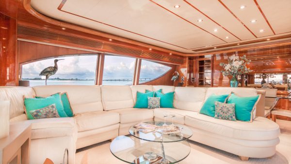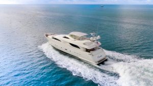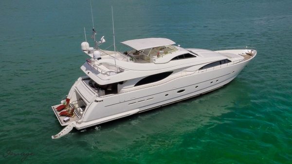 Built by Italian yard Ferretti as one of the group’s Custom Line series, she was delivered in 2004.