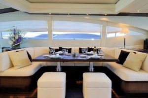 Something About Meri’s interior layout sleeps up to 9 guests in 4 rooms, including a master suite, 2 double cabins, 1 twin cabin and 1 pullman bed. She is also capable of carrying up to 4 crew onboard to ensure a relaxed luxury yacht experience. Timeless styling, beautiful furnishings and sumptuous seating feature throughout to create an elegant and comfortable atmosphere. Something About Meri’s impressive leisure and entertainment facilities make her the ideal charter yacht for socialising and entertaining with family and friends.